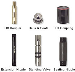 Thompson manufactures sucker rod pumps and all components necessary for all downhole pumps. Our balls and seats are available in stainless steel, wearalloy and carbide. Stainless sets are heat treated to hardness of 54 to 61 Rockwell C. Wearalloy is an alloy of chromium, tungsten and cobalt. Seats test 48 to 50 and balls test 60 on the Rockwell C Scale. Carbide balls and seats test 70 Rockwell C and have excellent wear resistance. Thompson manufactures a full line of subsurface pump accessories, listed below: